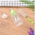 A 150ml bottle with soft silicone nipples and a brush for cleaning, designed to enable the safe, accurate, and hygienic feeding of newborns and small pets.