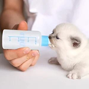 A 60ml bottle with soft silicone nipples and a brush for cleaning, designed to enable the safe, accurate, and hygienic feeding of newborns and small pets.