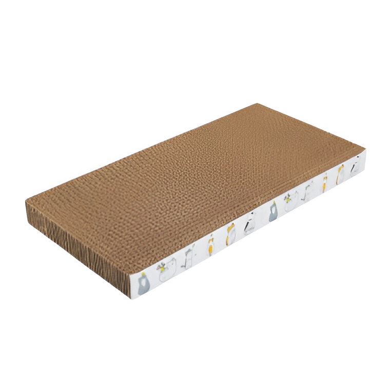 Additionally, this scratch board serves as a lounging pad, providing a snug spot for your cat to unwind after a playful session. Adorned with a tidy printed side design, it seamlessly integrates with your home decor. Ideal for both kittens and adult cats, this scratcher is an essential accessory for any cat-friendly household.