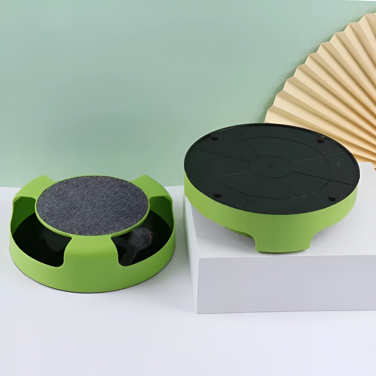 A fun two-in-one play station, featuring a spinning mouse chase toy and scratch pad base to keep cats active, entertained, and engaged. Encourages natural hunting instincts, improves claw health, and reduces home boredom.